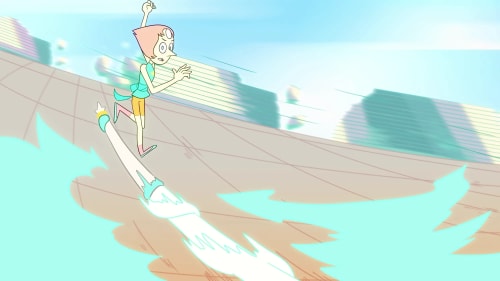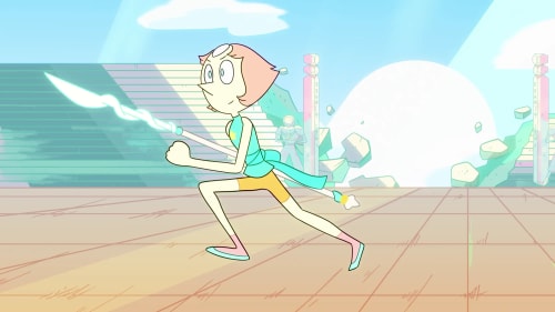 Tracking camera and action scene was the purpose of this animation work featuring characters from the Cartoon Network show "Steven Universe".